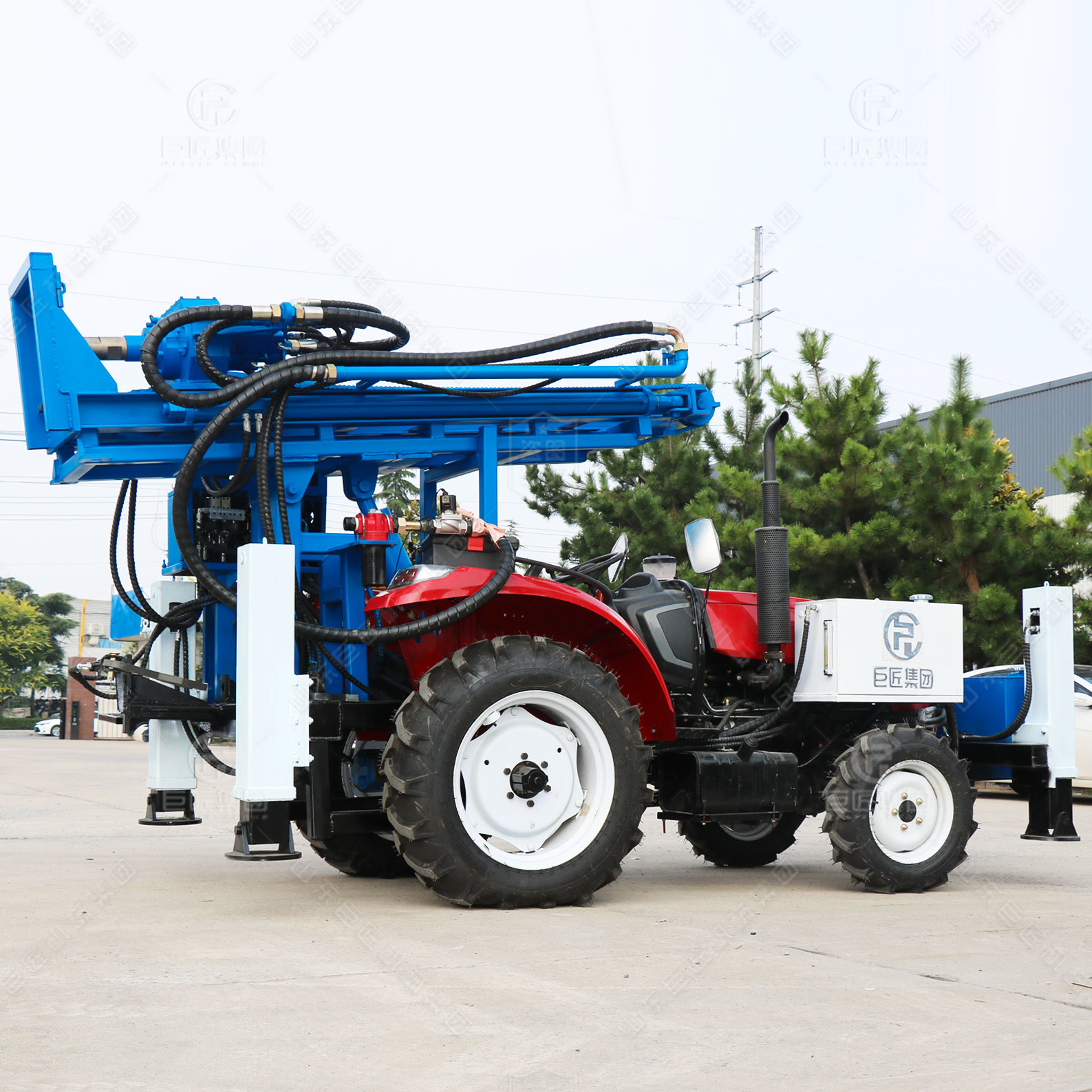 CJC-200T拖拉机式气动水井钻机是山东德信竞技机械集团根据户外施工需求研制的一款气动水井钻机,主要用于丘陵、山区等岩石较多地区的钻井作业,具有钻孔直径大、钻孔深、进尺快、移动灵活、效率高等优点,现已广泛使用于工民钻井、地温钻井、环保监测钻井等场合。